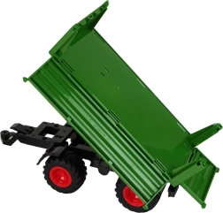 Zielona przyczepa z ruchomymi częściami i gumowymi kołami umożliwia łatwy załadunek i wyładunek ładunku – zupełnie jak na prawdziwej farmie.