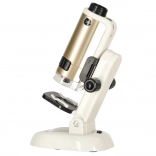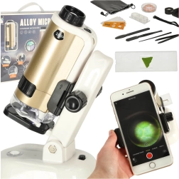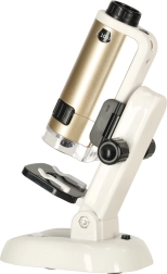 Ten mikroskop jest kompaktowy i łatwy do przenoszenia, co czyni go idealnym narzędziem do użytku w domu lub w szkole.