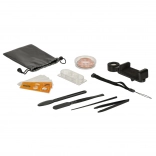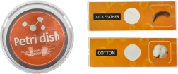 W skład zestawu wchodzą dwie przygotowane szkiełka z próbkami (pióra kaczego i włókna bawełniane) oraz dodatkowe cztery puste szkiełka do własnej preparacji próbek. Urządzenie umożliwia dzieciom przygotowanie własnych próbek, co dodatkowo angażuje ich zainteresowanie i umiejętności. W opakowaniu znajdują się także podstawowe narzędzia, takie jak pęseta i plastikowy skalpel, do łatwego przygotowywania własnych próbek.