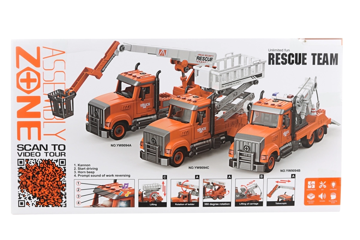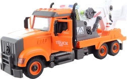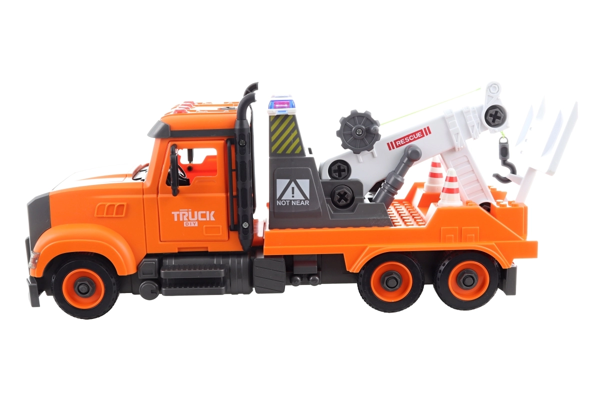 Piękny, duży holownik do skręcania. Zasilanie 3 bateriami AG13, które są częścią zestawu. Na dachu auta znajdują się 4 przyciski z funkcjami: uruchamianie, klakson, sygnał podczas cofania oraz melodie. Auto ma napęd bezwładnościowy. Materiał: plastik. Śrubokręt jest częścią zestawu. Pakowane w otwartym pudełku. Wymiary opakowania ok. 41×22×13 cm. Wymiary auta 36×15×11 cm. Wiek 3+.