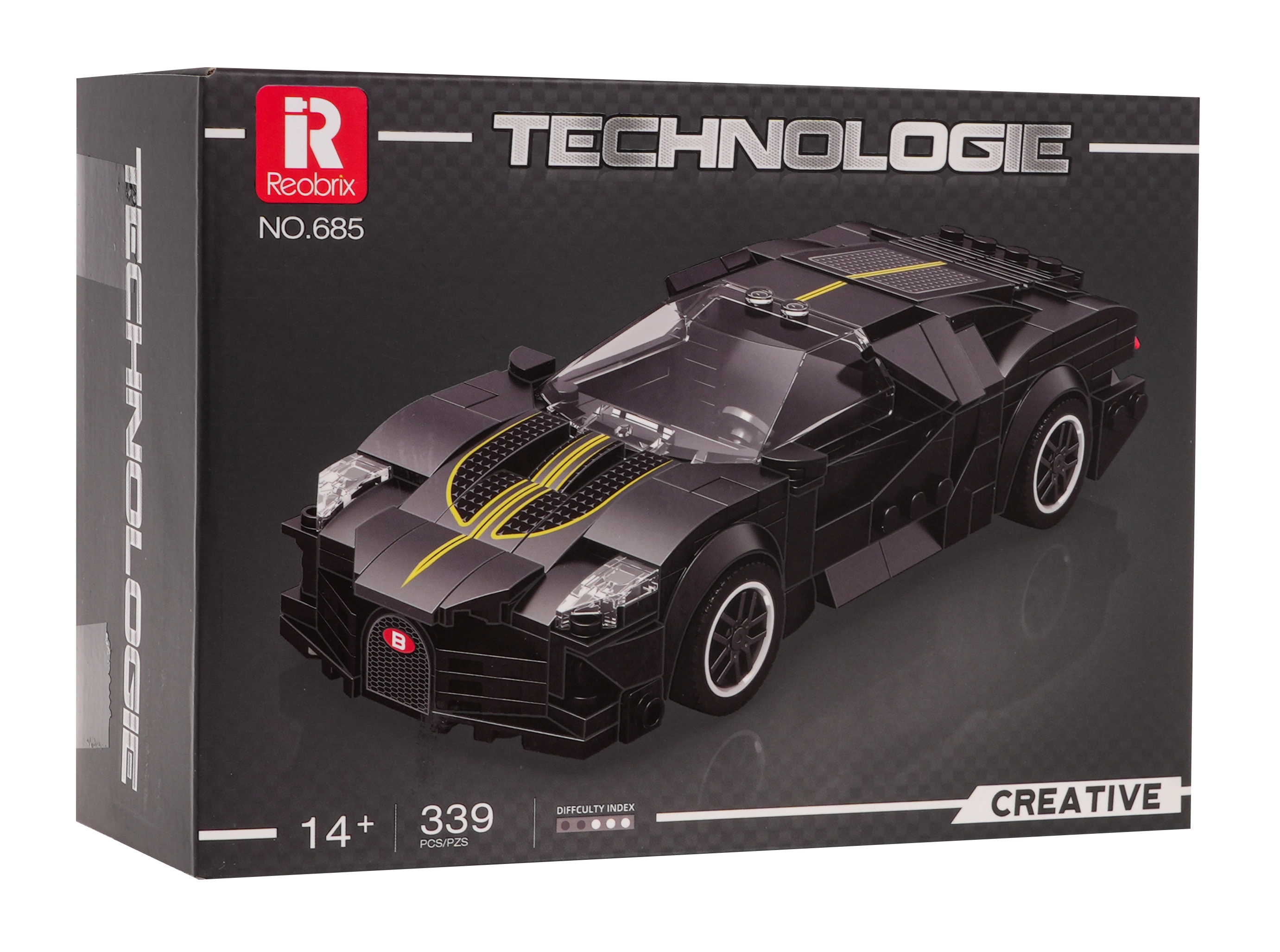 Zbuduj własne sportowe auto z 339 elementów w eleganckiej czarno‑szarej kolorystyce. Idealne dla dzieci od 14 lat, o poziomie trudności 2/5. Zestaw rozwija małą motorykę, wyobraźnię przestrzenną i cierpliwość. W komplecie znajduje się instrukcja obrazkowa oraz naklejki do wykończenia modelu.