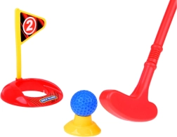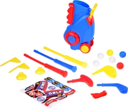 Zestaw zawiera 3 kolorowe kije z różnymi główkami ułatwiającymi uderzenia, 6 piłeczek, 2 podstawki (tee), 2 dołki z chorągiewkami oraz stojak/torbę. Dzieci poćwiczą celowanie, wyczucie siły i koncentrację, jednocześnie ciesząc się aktywną zabawą w pomieszczeniach i na zewnątrz.