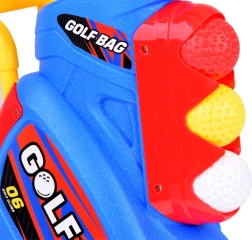 Lekka plastikowa torba golfowa na kółkach z rączką pozwala dzieciom wygodnie wozić cały zestaw gdziekolwiek – do ogrodu, na boisko czy do parku.