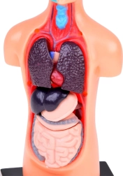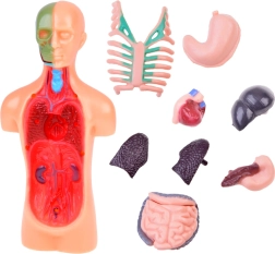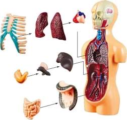 Serce, płuca, wątroba, żołądek, trzustka oraz jelita można wyjmować i ponownie umieszczać, dzięki czemu nauka jest obrazowa i angażująca.