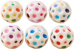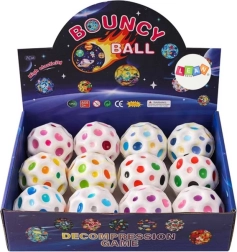 Zabawna kosmiczna piłeczka w białym kolorze z kolorowymi wgłębieniami zapewnia szybkie odbicia, możliwość ściskania dla sensorycznego uspokojenia i świetną zabawę dla dzieci i dorosłych. Dzięki średnicy 7 cm jest idealna do domu i na zewnątrz, wspiera motorykę małą oraz koordynację.
