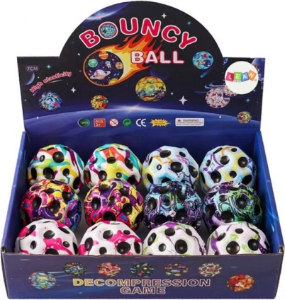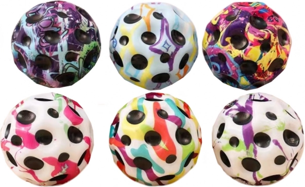 Struktura z wgłębieniami wspiera motorykę małą i zapewnia przyjemne doznania dotykowe – piłeczkę można ściskać, rzucać i łapać. Jest idealna do aktywnej zabawy, treningu koordynacji i redukcji stresu.