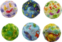 Świecąca piłeczka z wypustkami i motywami dinozaurów została zaprojektowana tak, aby bawić i jednocześnie rozwijać umiejętności dziecka. Po naciśnięciu lub odbiciu zapala się, co motywuje dzieci do ruchu i radosnego odkrywania. Dzięki przyjemnej fakturze dobrze leży w dłoni także młodszym dzieciom.