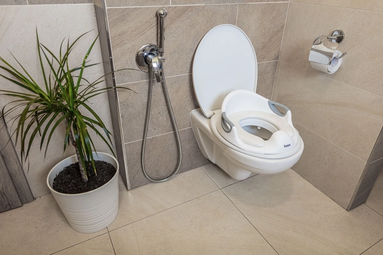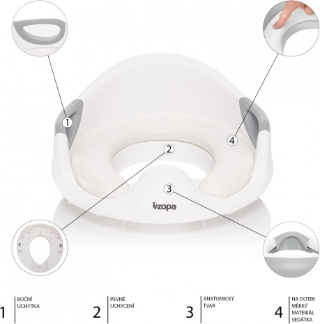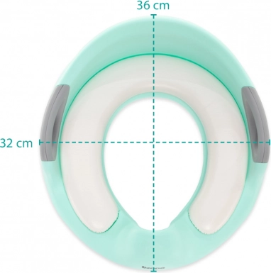 Komfort siedzenia zapewnia miękka wkładka, która jest wodoodporna i odporna na pęknięcia oraz odkształcenia. Anatomiczny kształt z podwyższeniem zapobiega niechcianemu zabrudzeniu i ułatwia utrzymanie czystości. Dzięki lekkiej konstrukcji nakładka sprawdzi się również w podróży.