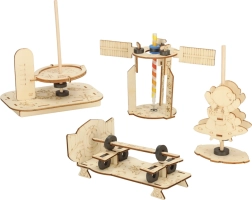 Precyzyjnie wycinane laserowo elementy z drewna łączą się ze sobą bez kleju i narzędzi. Dzieci poznają podstawy mechaniki, przekładni i równowagi już podczas samego montażu.