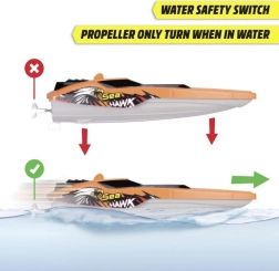 RC łódź Sea Hawk to świetny wybór dla początkujących i miłośników modeli zdalnie sterowanych. Dzięki częstotliwości 2.4 GHz cieszysz się niezawodnym sterowaniem bez zakłóceń, a zwiększona prędkość i maksymalnie 4 km/h oferują zabawną i bezpieczną jazdę na spokojnej tafli wody.