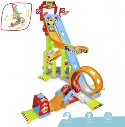 Rozpocznij wyścig błyskawicznym wystrzałem i zobacz, jak autka przelatują przez dużą pętlę. Solidna dawka prędkości i zabawy dla małych kierowców.