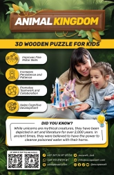 Te kolorowe 3D drewniane puzzle w kształcie magicznego jednorożca zachwycą małych konstruktorów i miłośników fantazji. Wysokiej jakości nadruk nadaje modelowi wyrazisty wygląd, a dzięki składaniu bez kleju dzieci mogą wielokrotnie układać model od nowa. W zestawie znajduje się przejrzysta instrukcja krok po kroku.