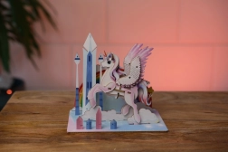 Model jednorożca wyróżnia się żywymi kolorami i dekoracyjnym wyglądem – świetny do wyeksponowania po złożeniu.