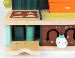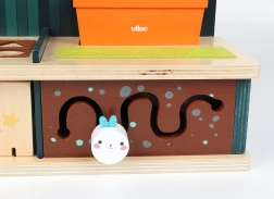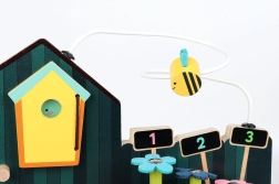 Zabawka rozwija motorykę małą i koordynację ręka-oko dzięki interaktywnym elementom, takim jak ruchome części i metalowe druciki.