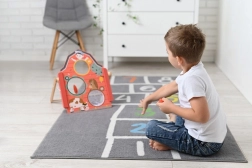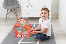 Wytrzymała, drewniana konstrukcja z wesołymi ilustracjami farmy gwarantuje długą żywotność i bezpieczną zabawę.
