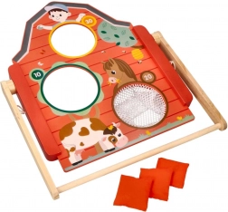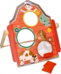 Ciesz się godzinami zabawy z tą pięknie wykonaną, drewnianą grą o tematyce farmy. Odpowiednia do zabawy w pomieszczeniach i na zewnątrz, trenuje koordynację ręka-oko oraz uczy dzieci liczenia i zdobywania punktów. Proste składanie dzięki konstrukcji z podpórką zapewnia stabilność podczas gry.