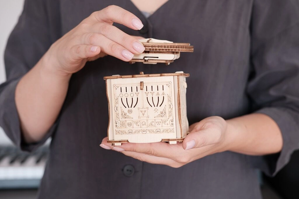 Wykonana przy użyciu najwyższej jakości cięcia laserowego, każdy detal szkatułki jest dopracowany z precyzją.