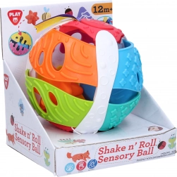 Zabawna kula do sortowania Playgo o średnicy 15 cm dostarcza dzieciom od 12 miesięcy mnóstwo wrażeń sensorycznych. W zestawie znajdują się 2 miękkie piłeczki, które wkłada się do kuli, oraz wstążka z obrotowym kółeczkiem, które podczas kręcenia wydaje klikający dźwięk.