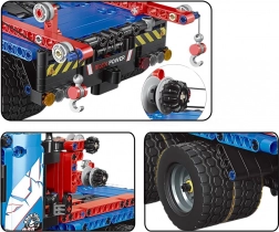 Model jest zasilany akumulatorem 3,7 V (w zestawie), natomiast pilot wykorzystuje baterie 2× AAA 1,5 V (brak w zestawie). Napęd 4×4 pomaga pokonywać przeszkody, a realistyczne proporcje wiernie odwzorowują prawdziwy pojazd holowniczy. Czytelna instrukcja obrazkowa ułatwi budowę także młodszym konstruktorom.