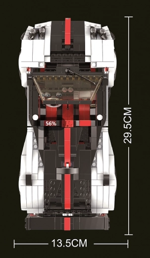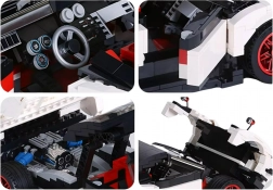 Ta dopracowana konstrukcja zachwyci wszystkich miłośników aut i techniki. Realistyczne proporcje w skali 1:16, kontrastowe biało‑czarne wykończenie z czerwonymi akcentami oraz funkcjonalne elementy czynią z niej świetny model do zabawy i ekspozycji. Dzięki przejrzystej obrazkowej instrukcji budowa jest przyjemna i rozwija małą motorykę, wyobraźnię przestrzenną oraz cierpliwość.