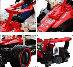 Ten szczegółowy zestaw konstrukcyjny wyścigowego monopostu w skali 1:8 zachwyci wszystkich fanów szybkich kół i modeli technicznych. Po złożeniu otrzymasz imponujący czerwony bolid z realistycznymi elementami – od aerodynamicznego skrzydła po szerokie opony – oraz przede wszystkim z możliwością jazdy do przodu/do tyłu i skręcania za pomocą pilota RC lub aplikacji mobilnej.