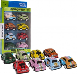 - Różnokolorowy zestaw 8 autek dla urozmaiconej zabawy i kolekcjonowania