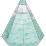 Kostka z trójwymiarowym labiryntem, dwie piramidy z kuleczką, kulisty labirynt, kulkowa kula i kostka RUBIKA – różnorodne zadania na długie godziny mądrej zabawy.