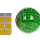 - owalny spinner z łamigłówką i sznurkiem, kostka RUBIKA, kostka z 3D labiryntem i kuleczką, 2× piramida z labiryntem i kuleczką, kulista łamigłówka
