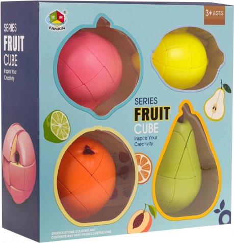 Ten barwny zestaw obejmuje cztery trójwymiarowe łamigłówki w kształcie ulubionych owoców: jabłka, cytryny, pomarańczy i gruszki. Każdy model składa się ze wzajemnie połączonych elementów, które można obracać i przekładać. Celem jest po wymieszaniu przywrócić elementy do formy pierwotnego owocu – wciągające wyzwanie dla dzieci i dorosłych.