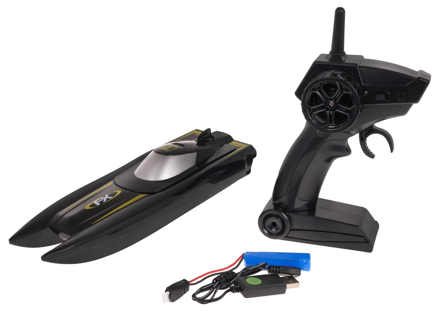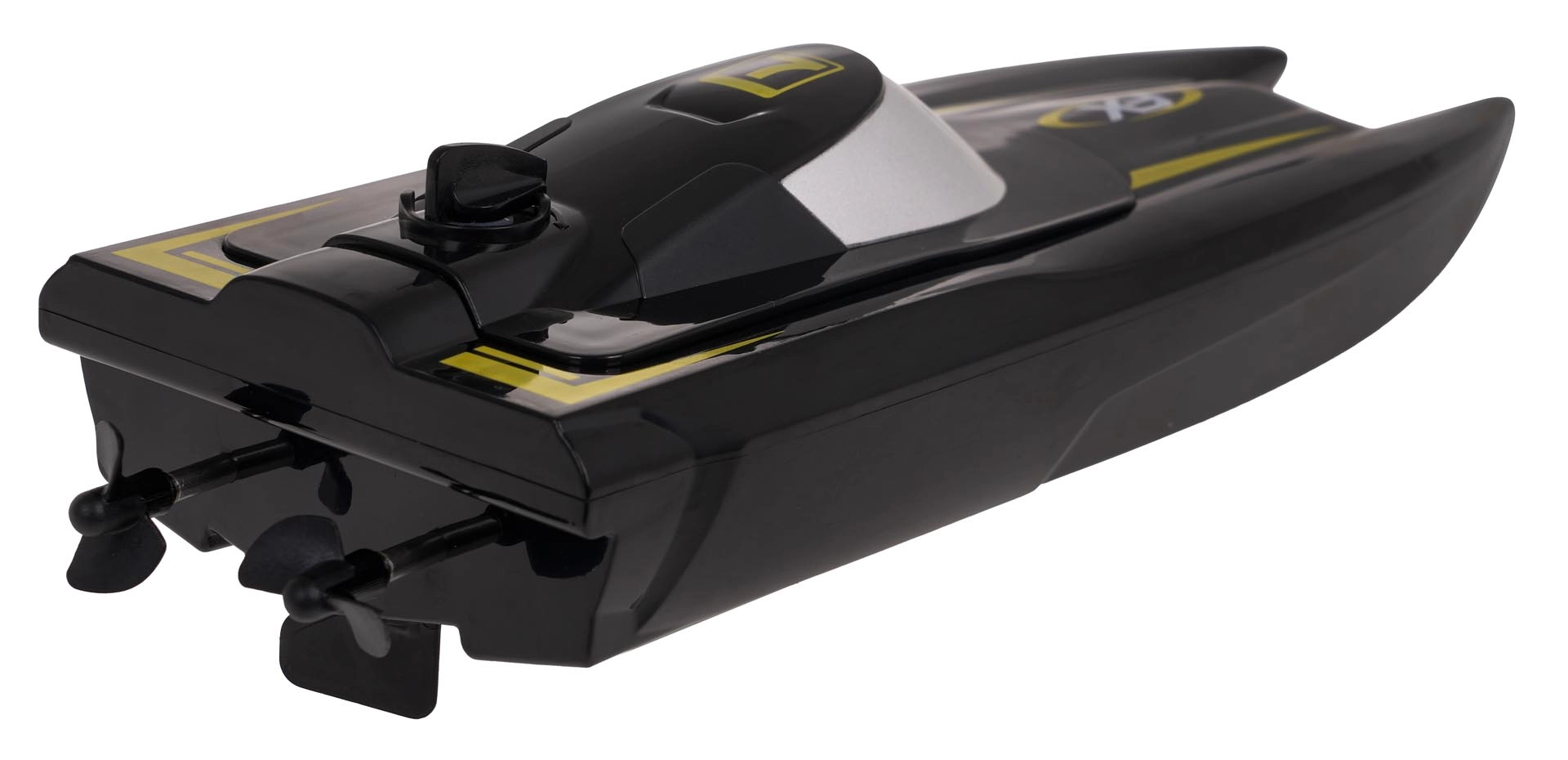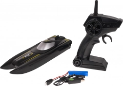 Zdalnie sterowana szybka łódź dla dzieci od 14 lat i dorosłych. Wykonana z plastiku, co zapewnia stabilną konstrukcję. Łódź bardzo łatwo prowadzi się do przodu, do tyłu oraz skręca w prawo i w lewo. Dodatkowo wyposażona jest w specjalny czujnik, dzięki któremu uruchamia się tylko w wodzie i wyłącza po wyjęciu z wody. Łódź jest zasilana akumulatorem 650 mAh 3,7 V (w zestawie), pilot działa na 2 baterie AA 1,5 V (nie są dołączone).