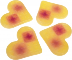 Cztery gofry w kształcie serca stopniowo zmieniają kolor dzięki diodom LED wewnątrz gofrownicy – efekt bezpiecznego „wypiekania” bez gorących powierzchni.