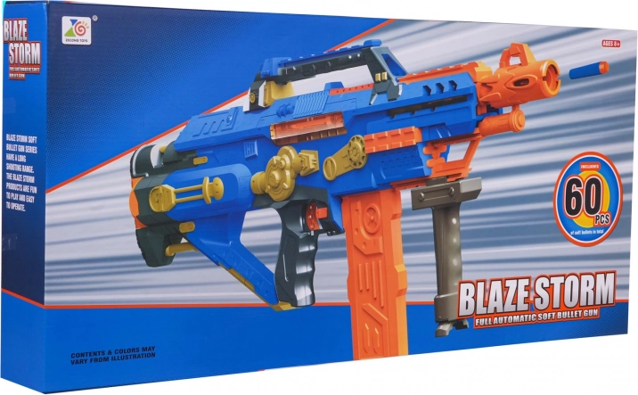 Automatyczny piankowy blaster BLAZE STORM stworzono do dynamicznej rodzinnej zabawy. Wystarczy wycelować i nacisnąć spust – o resztę zadba wydajny mechanizm. Odpinany dolny magazynek, przesuwne okienko do zwalniania zablokowanej strzałki oraz solidna konstrukcja z wysokiej jakości plastiku czynią z niego świetny wybór dla dzieci od 8 lat.