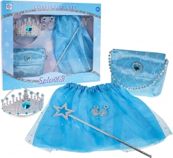 Zestaw dla małej księżniczki oferuje bogaty wybór akcesoriów, dzięki którym każde dziecko może stać się tym, kim tylko zechce. Wysoka jakość wykonania z dbałością o detale w pięknym niebieskim kolorze przynosi radość i pobudza wyobraźnię Twojego skarbu.