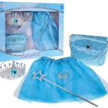 Odkryj magiczny świat z naszą zestawem dla małej księżniczki. Ten starannie skomponowany komplet jest idealny dla dzieci od 3 lat, zawiera koronę, magiczną różdżkę, kolczyki, torebkę oraz spódniczkę w pięknych odcieniach niebieskiego, doskonały na karnawał i zabawy w przebieranie.