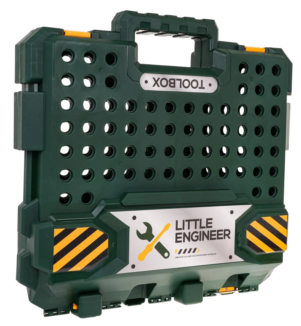 Dziecięce narzędzie 2w1 oferuje doskonałą kombinację zabawy i nauki. Dzięki 98 komponentom dzieci mogą łatwo zamienić elementy na stół roboczy lub przenośną walizkę na narzędzia.