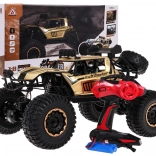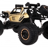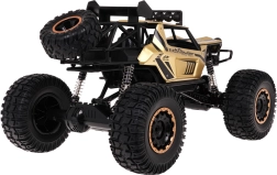 Złoty terenowy model RC 1:8 to idealny wybór dla dzieci od 3. roku życia, które będą cieszyć się codzienną przygodą. Dzięki metalowemu nadwoziu i konstrukcji antykolizyjnej model jest wystarczająco wytrzymały, aby sprostać trudniejszym warunkom terenowym. Ciesz się jazdą z wysokim zawieszeniem i dużymi gumowymi oponami. Oświetlenie LED umożliwia jazdę także przy słabej widoczności.