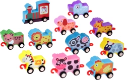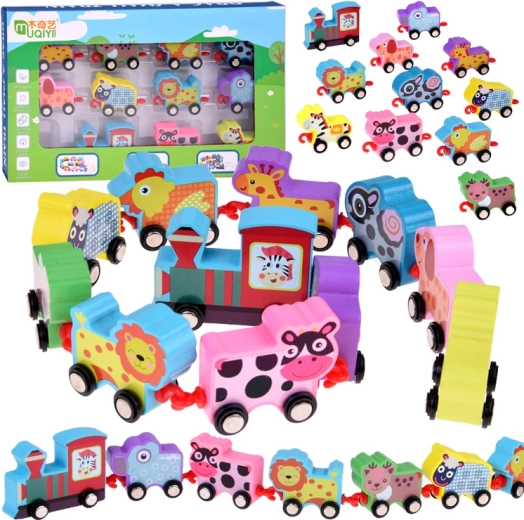 Szukasz zabawki, która łączy naukę i zabawę? Ten drewniany pociąg ze zwierzątkami jest idealnym rozwiązaniem dla dzieci już od 12 miesięcy. Składa się z lokomotywy i dziesięciu wagoników, każdy ozdobiony różnym zwierzątkiem i wyposażony w wyraziste kolory.