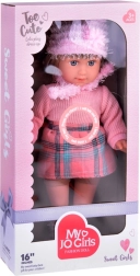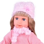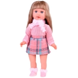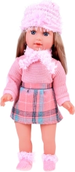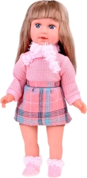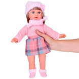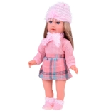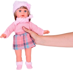 Przedstawiamy Wam piękną lalkę Kate, która uczy dzieci angielskiego. Ta stylowa lalka jest ubrana w różowy sweter, mini spódniczkę z wzorem w kratę, skarpetki, szalik i czapkę z ozdobnymi elementami. Wysokość lalki to około 42 cm.