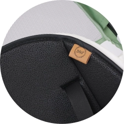 siedzisko wyposażone w pałąk ochronny i pasy bezpieczeństwa z miękkimi poduszkami naramiennymi,