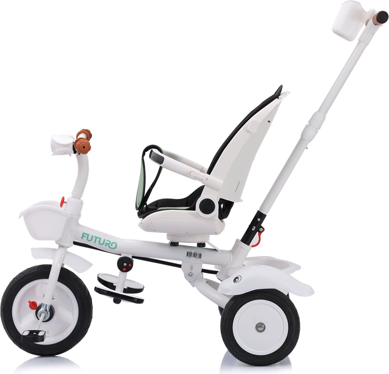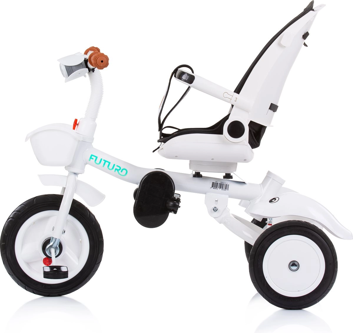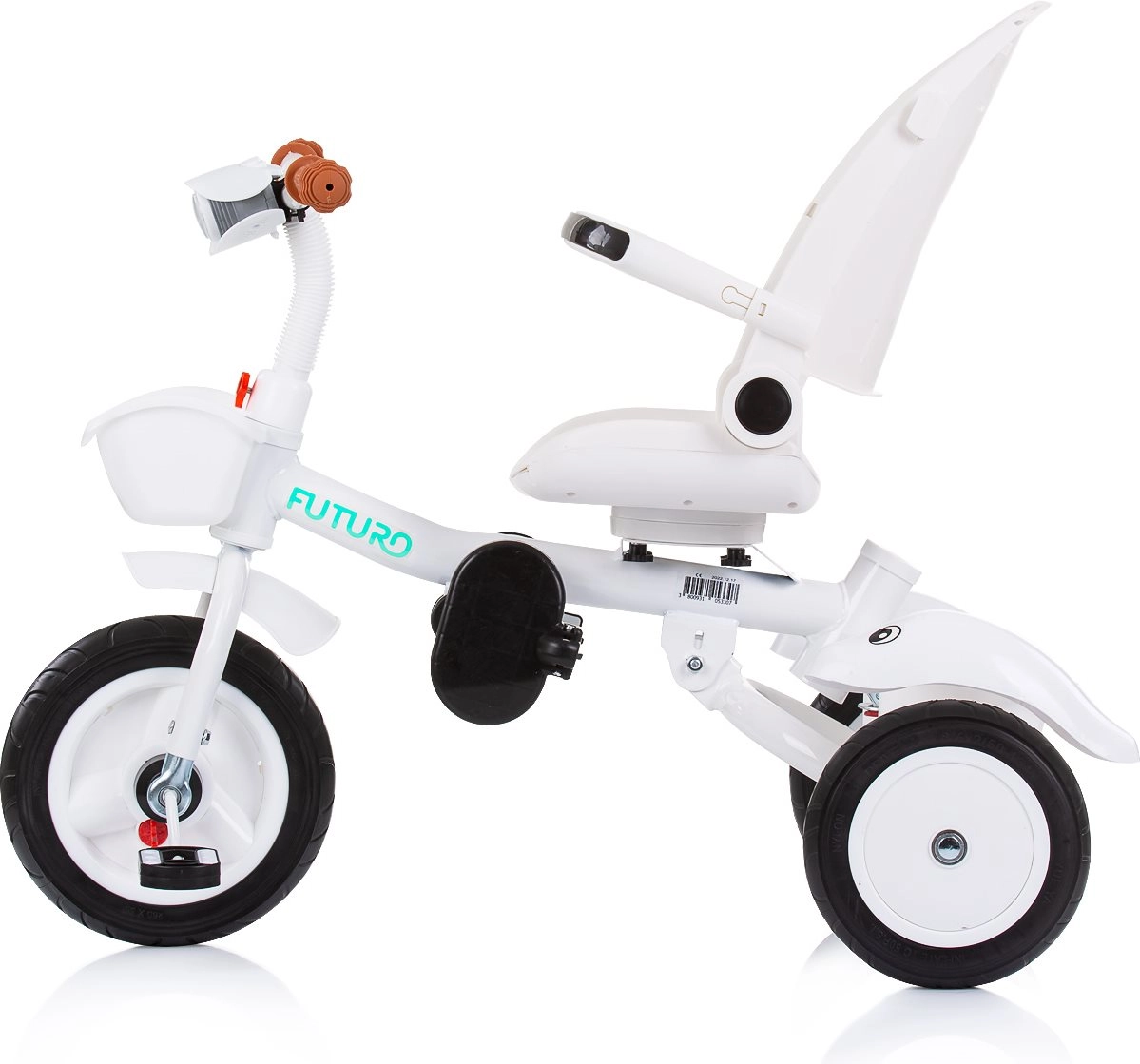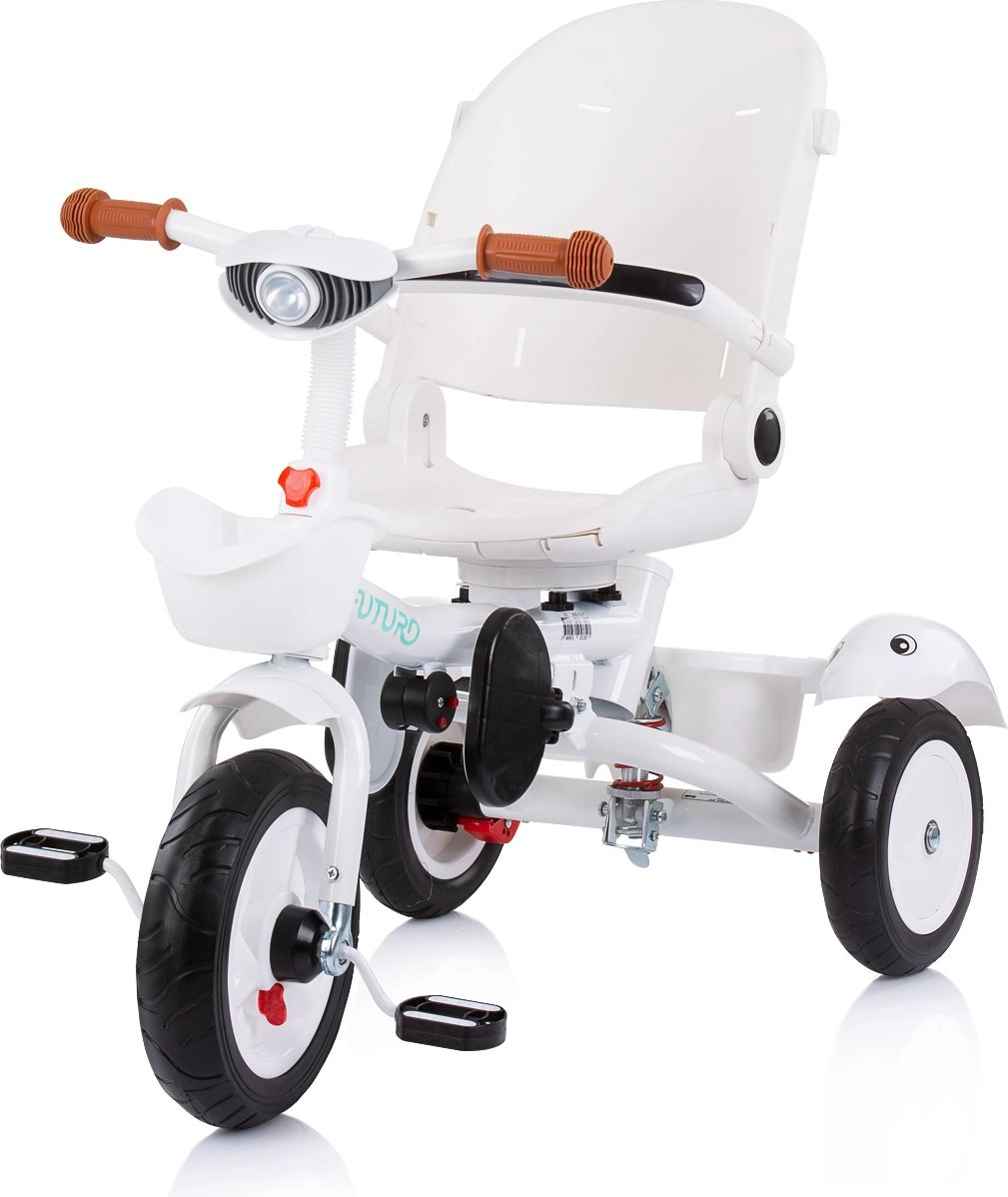 Wielofunkcyjny produkt Chipolino Trójkołowy rowerek ze składanym daszkiem Futuro z 2 różnymi sposobami użytkowania – rodzic pcha dziecko lub dziecko samo kieruje zabawką za pomocą pedałów. Trójkołowiec stanie się świetnym towarzyszem, który rośnie razem z dzieckiem.