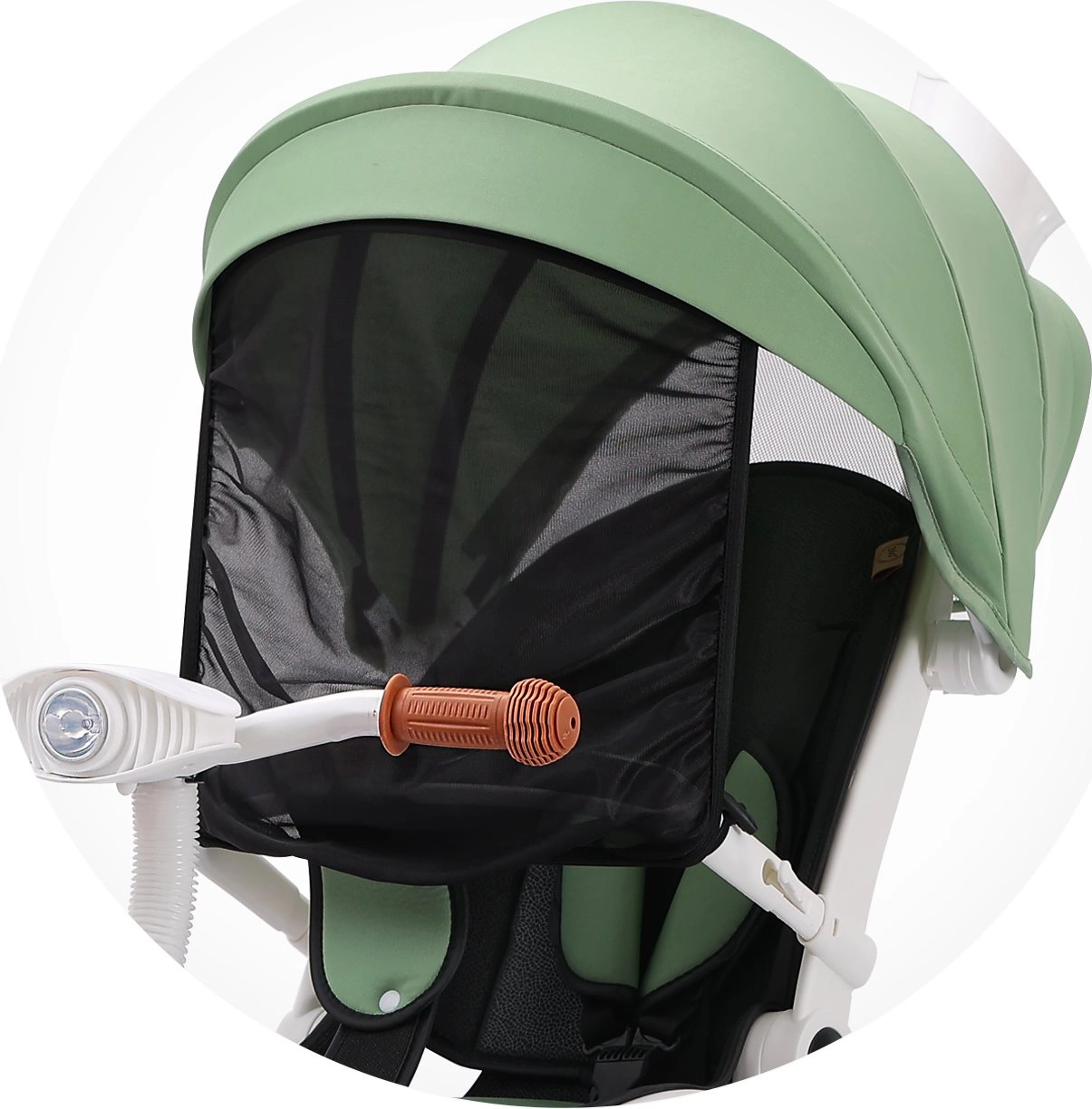daszek, rączka dla rodzica i pałąk ochronny są odpinane,