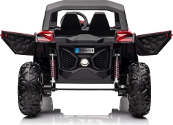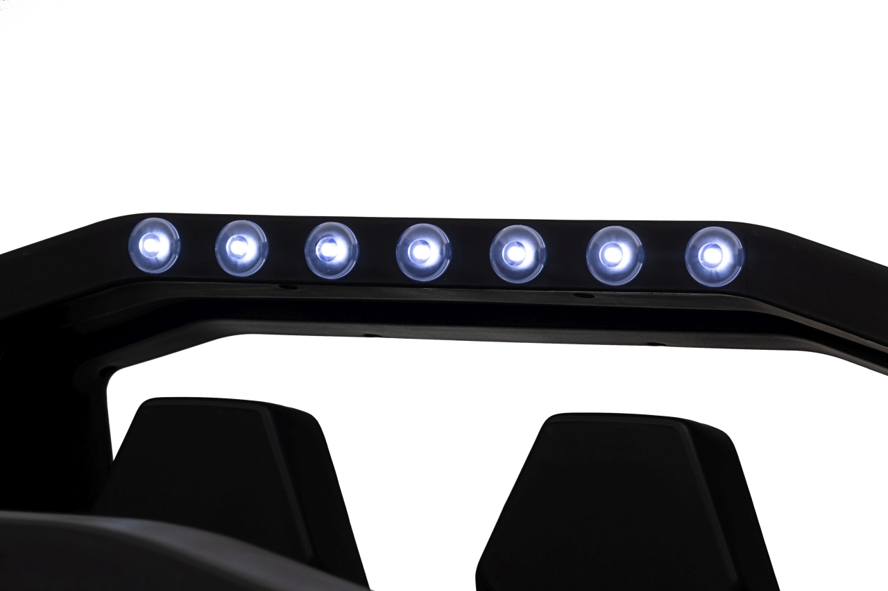 Dodatkowe wyposażenie obejmuje oświetlenie LED, możliwość podłączenia przez USB, MP3 i radio FM, co zwiększa frajdę podczas jazdy. Jeździk oferuje także otwierane drzwi z pasami bezpieczeństwa oraz wygodne, wentylowane siedziska z ekoskóry.