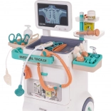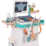 Ten magiczny medyczny wózek jest lekki i łatwy do obsługi dzięki dużym kołom i praktycznemu uchwytowi. Twoje dziecko może stać się lekarzem, okulistą, kardiologiem lub dentystą. Zestaw zawiera panel z monitorem, który imituje dźwięki bicia serca i alarmu, oraz umożliwia zmianę obrazów EKG i RTG. Odpowiedni dla dzieci od 3 lat.
