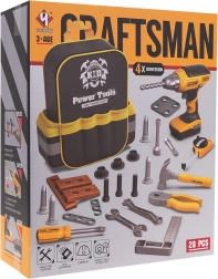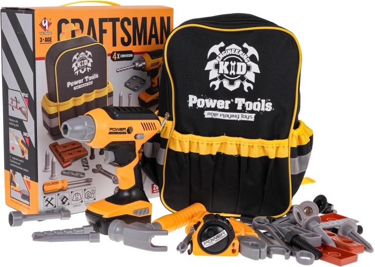 Dziecięcy zestaw narzędzi z plecakiem zawiera wszystko, czego mały majsterkowicz potrzebuje. Bogate wyposażenie obejmuje 28 elementów, w tym miarkę, młotek, szczypce, klucz i wiele więcej.