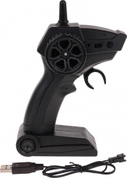 Bezprzewodowe radio 2,4 GHz oferuje płynne sterowanie bez zakłóceń – jazda do przodu/tyłu, skręcanie z możliwością trymowania oraz precyzyjna reakcja na polecenia. Zasilanie z akumulatora 3,7 V 1200 mAh (w zestawie) wydłuża czas zabawy, a ładowanie zapewnia dołączony kabel USB.
