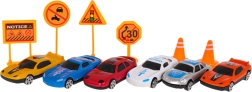- Bogaty zestaw akcesoriów – 6 autek, 4 znaki, 2 pachołki