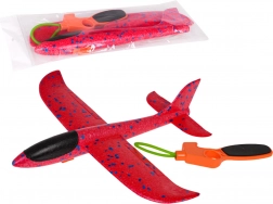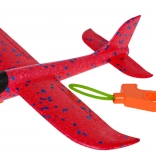 Ten czerwony piankowy samolot został zaprojektowany do stabilnych i długich lotów. Wystarczy zaczepić gumkę procy o dolny element samolotu, naciągnąć i wypuścić – świetna zabawa pod gołym niebem gwarantowana. Wytrzymały materiał znosi upadki i częste użytkowanie.