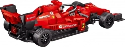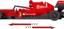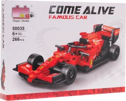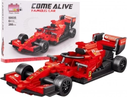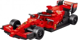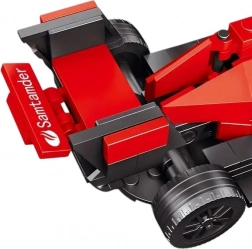 Kompletny zestaw klocków z wysokiej jakości plastiku pozwala zbudować szczegółowy czerwony pojazd inspirowany F1 – idealny do zabawy i ekspozycji.