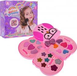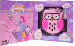 Uroczy dziecięcy zestaw do makijażu w kształcie sowy ucieszy każdą małą elegantkę od 5 lat. Zawiera bogatą gamę cieni i balsamów w kształtach serduszek i gwiazdek, ukrytych w rozkładanej szkatułce. Kosmetyki są bezpieczne dla dziecięcej skóry i łatwo zmywalne, więc zabawa jest bez zmartwień. Figlarny design wspiera kreatywność i rozwój poczucia estetyki.