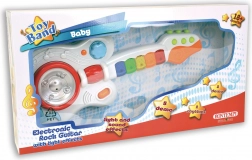 Efekty świetlne dodają zabawie energii przy każdym graniu. Zasilanie: 3 baterie R6 / AA 1,5 V, nie dołączone do zestawu. Gitara jest odpowiednia dla dzieci od 1,5 roku, wymiary: 17 x 40 x 5 cm.